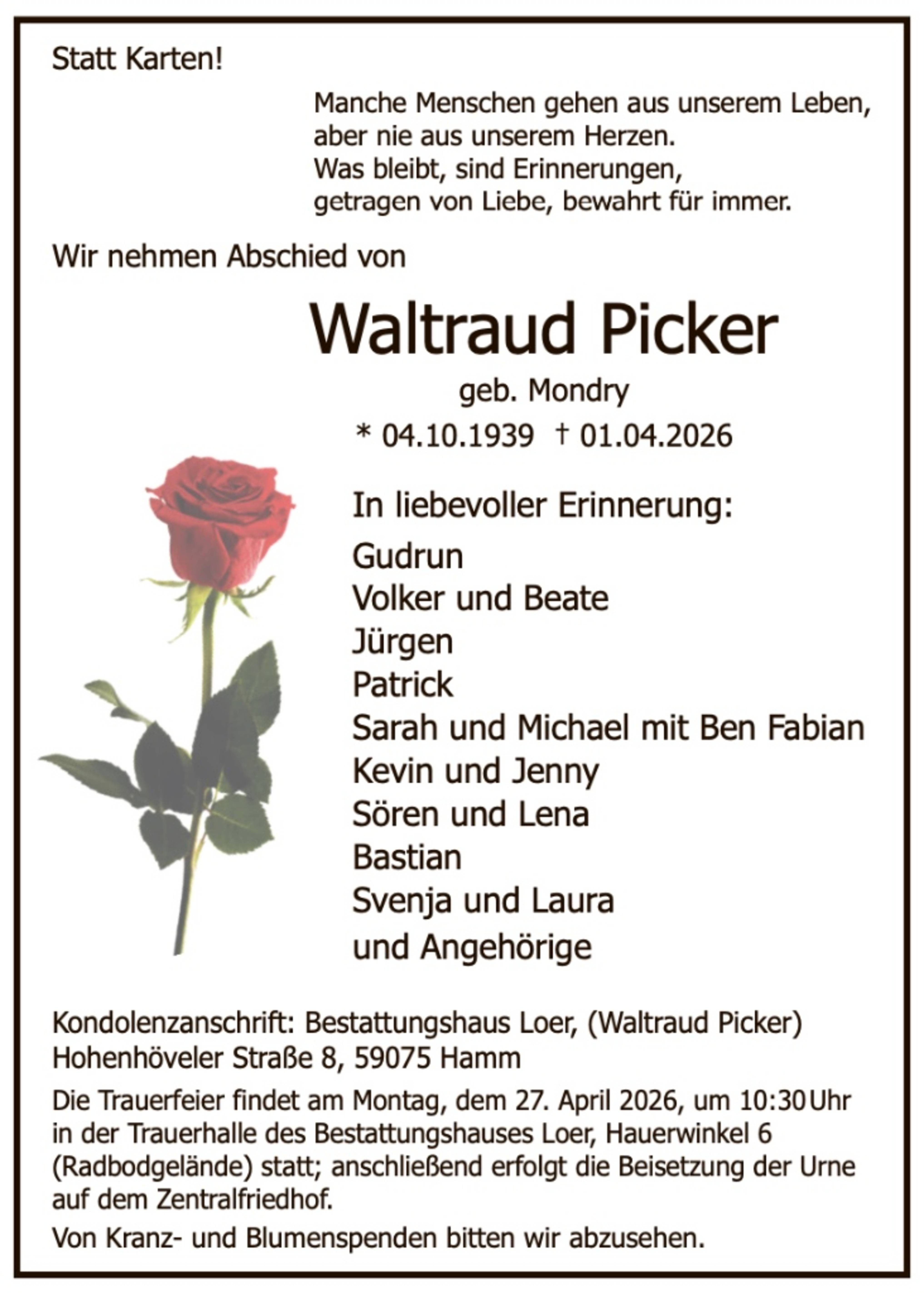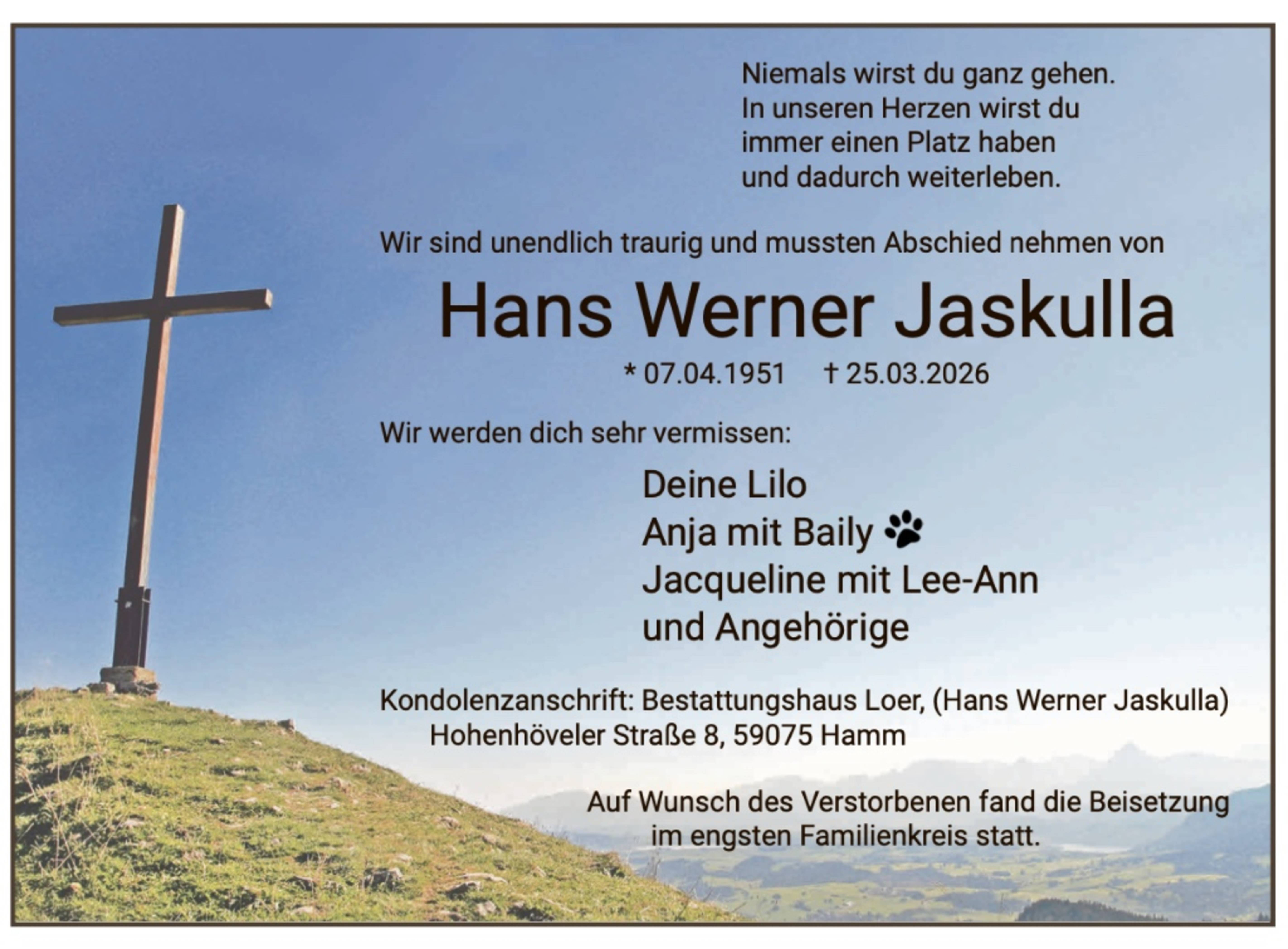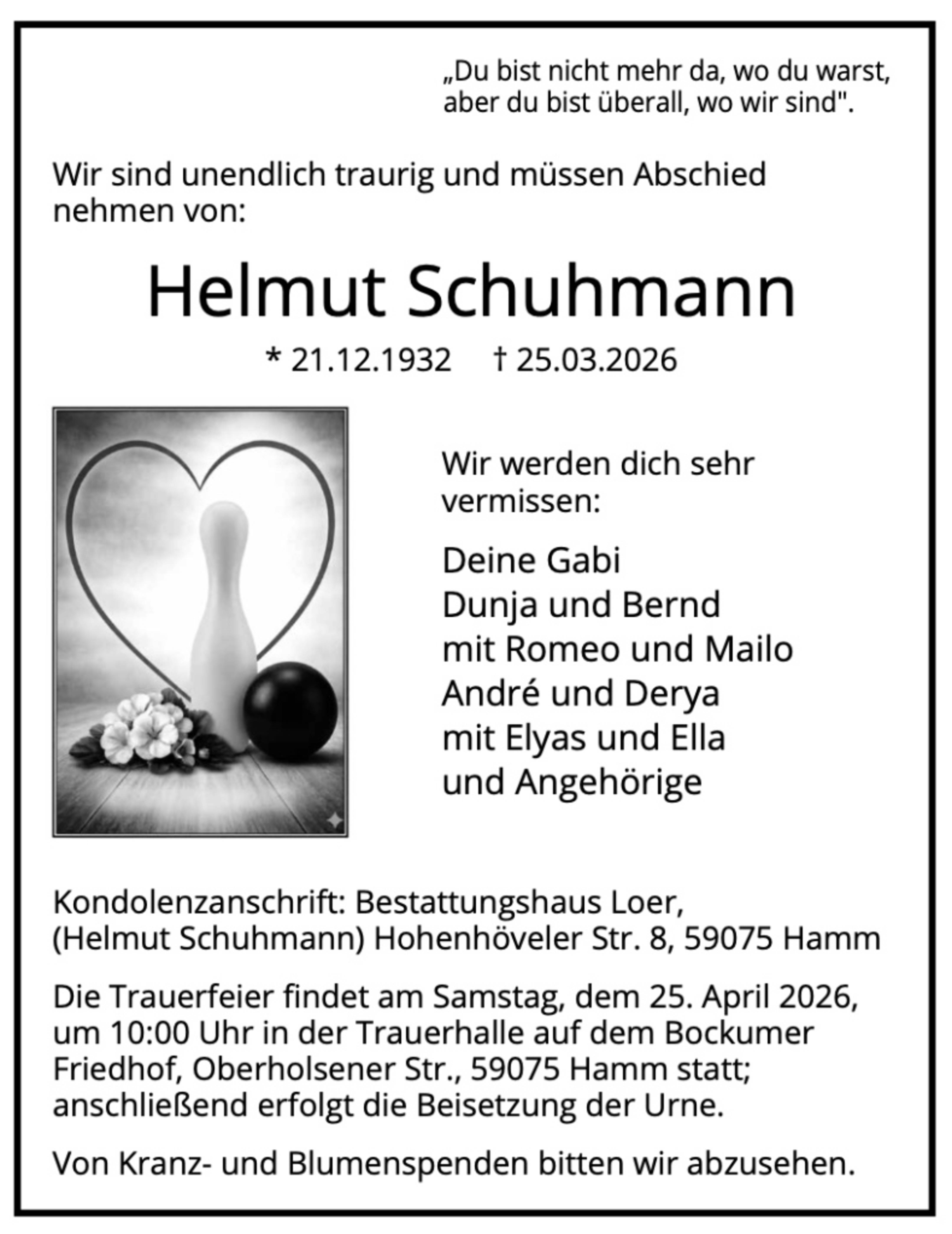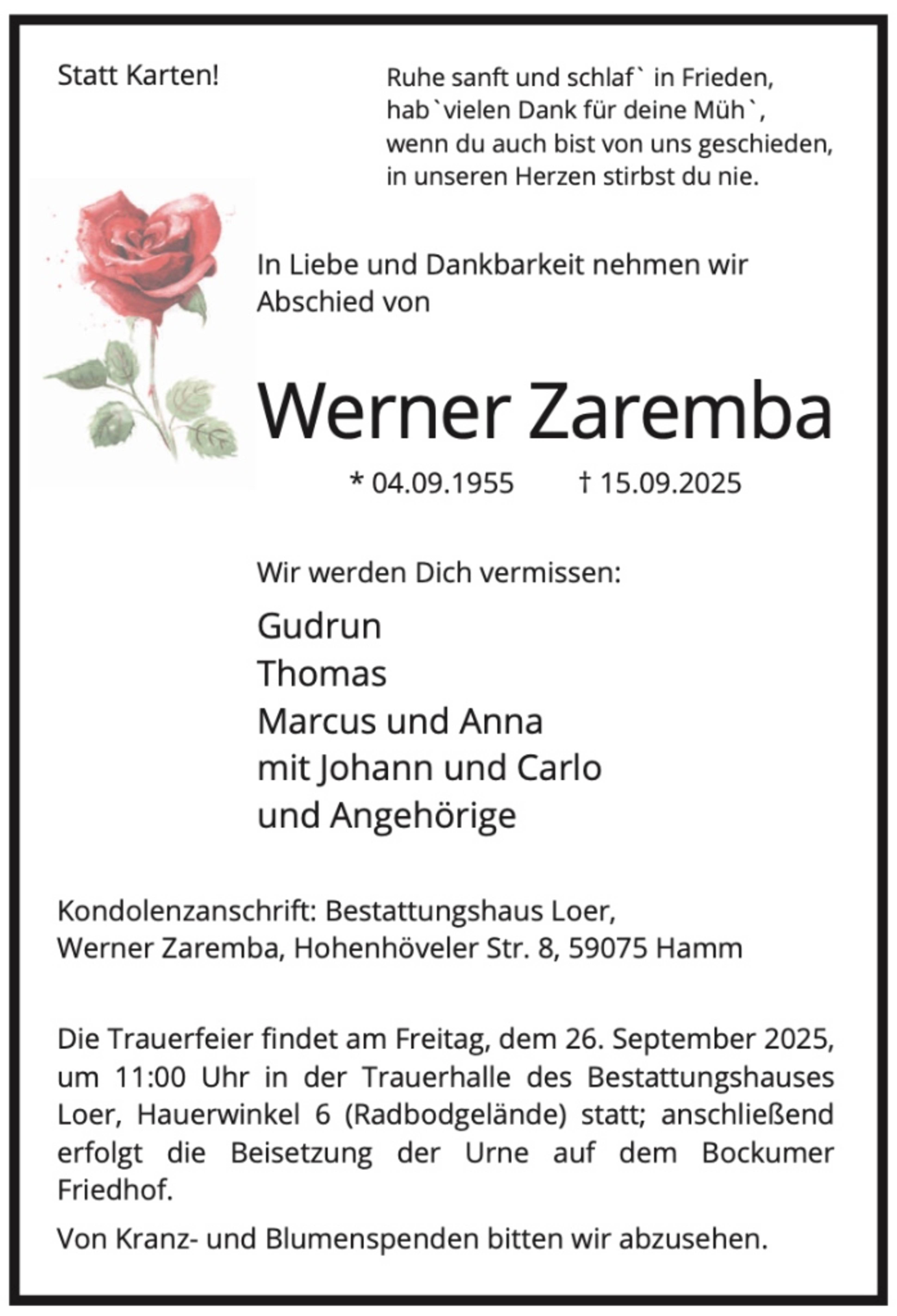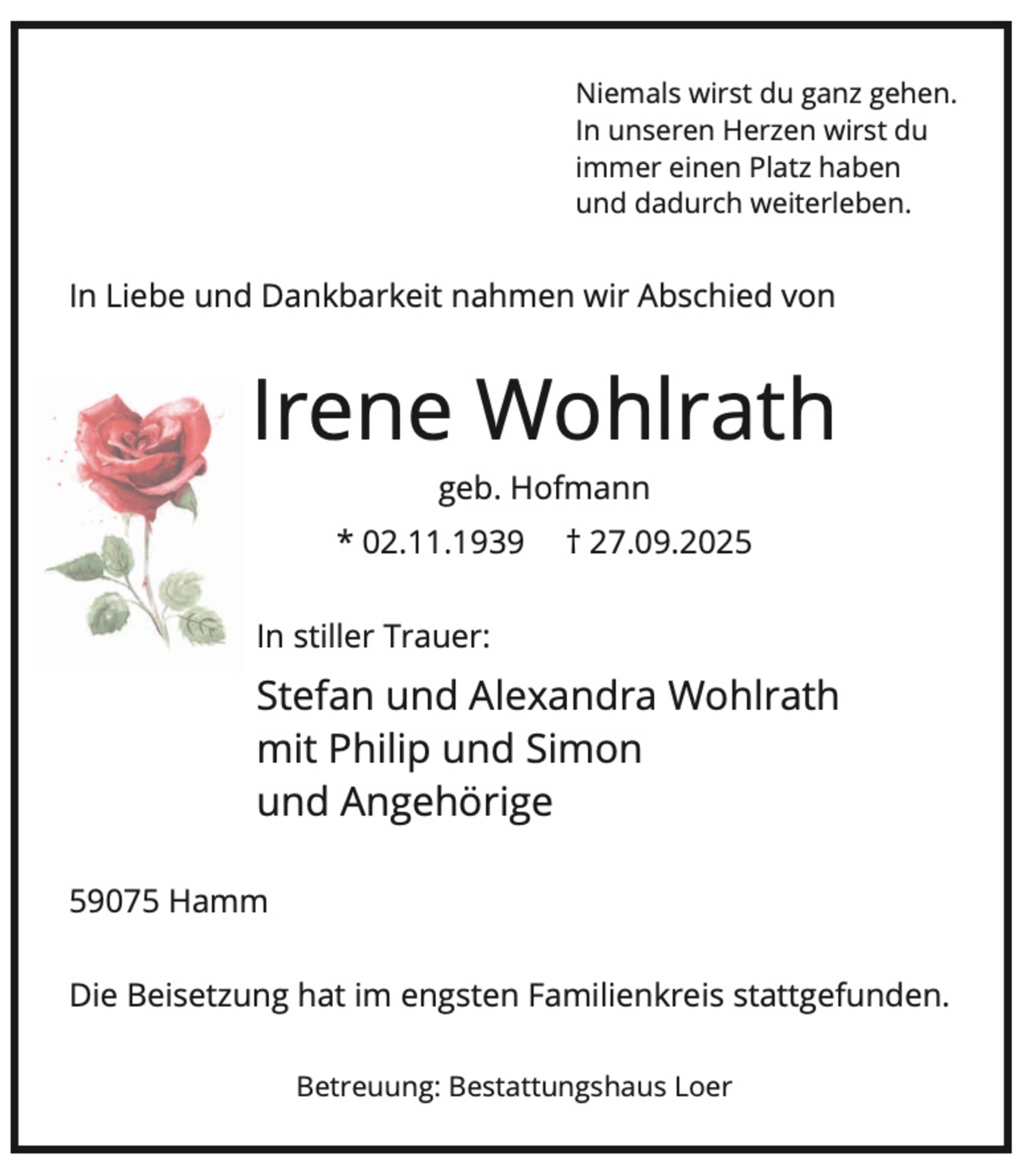 Zusätzlich zur Traueranzeige in der Zeitung finden Sie Ihren Nachruf auch in unserem Gedenkportal veröffentlicht:
