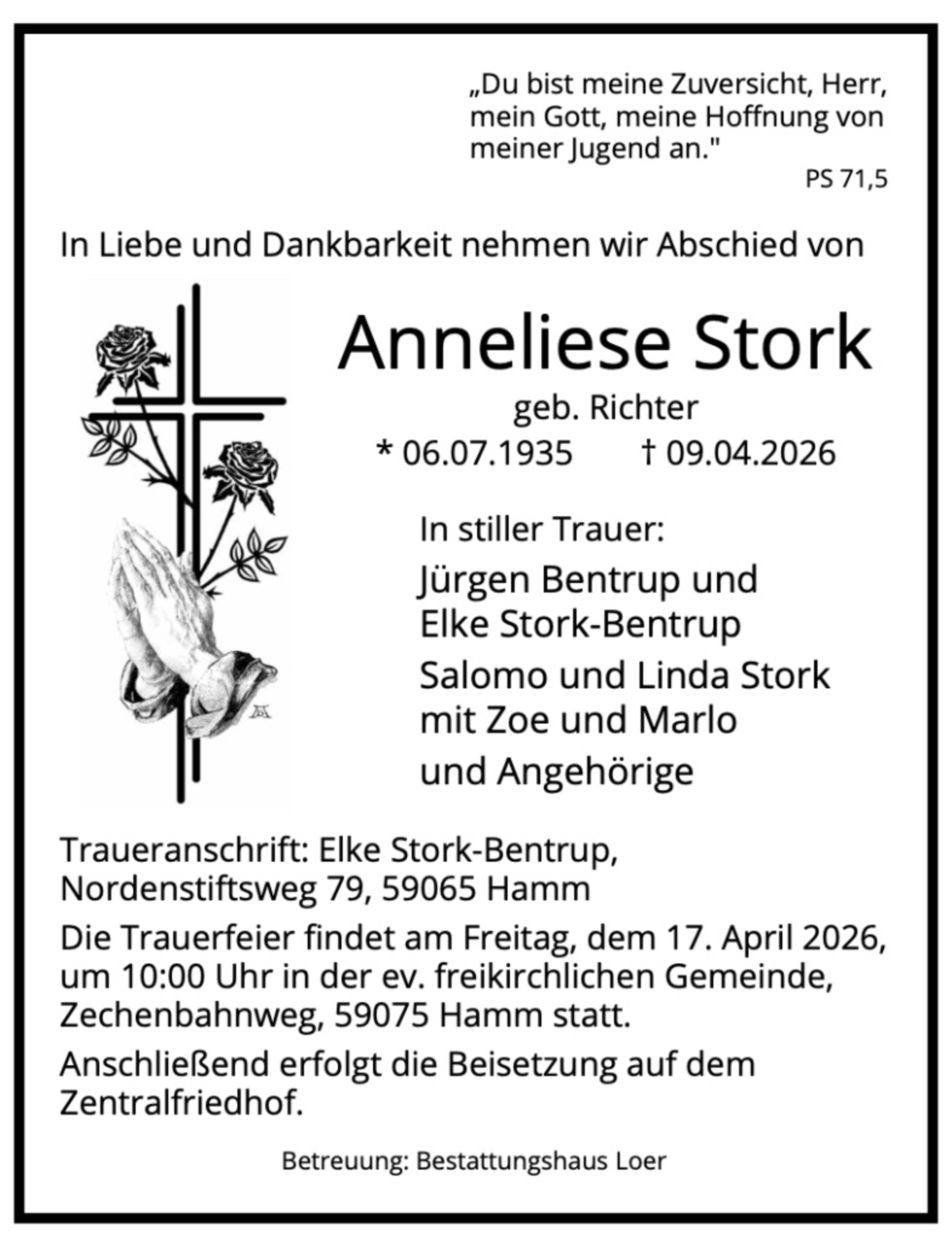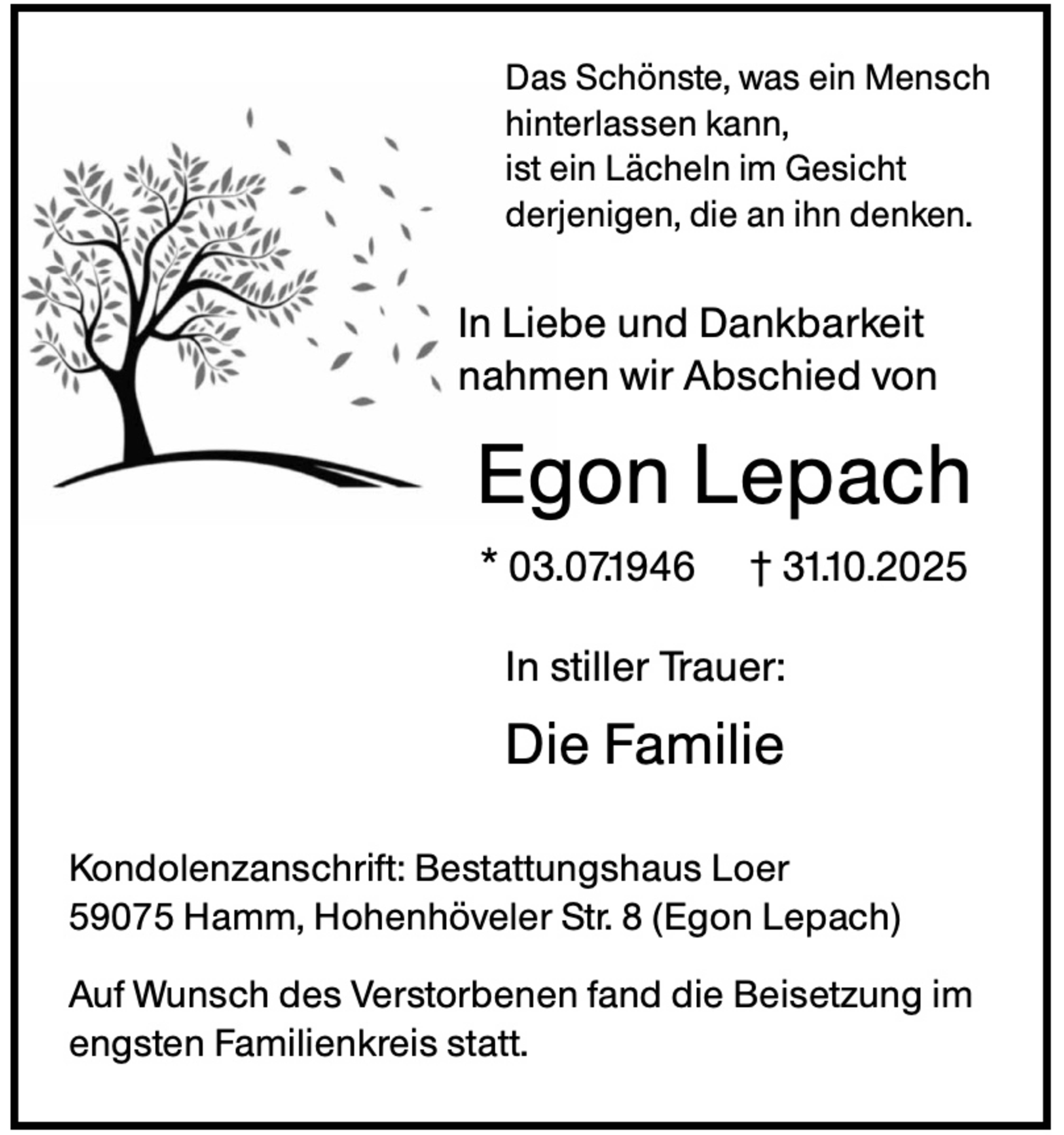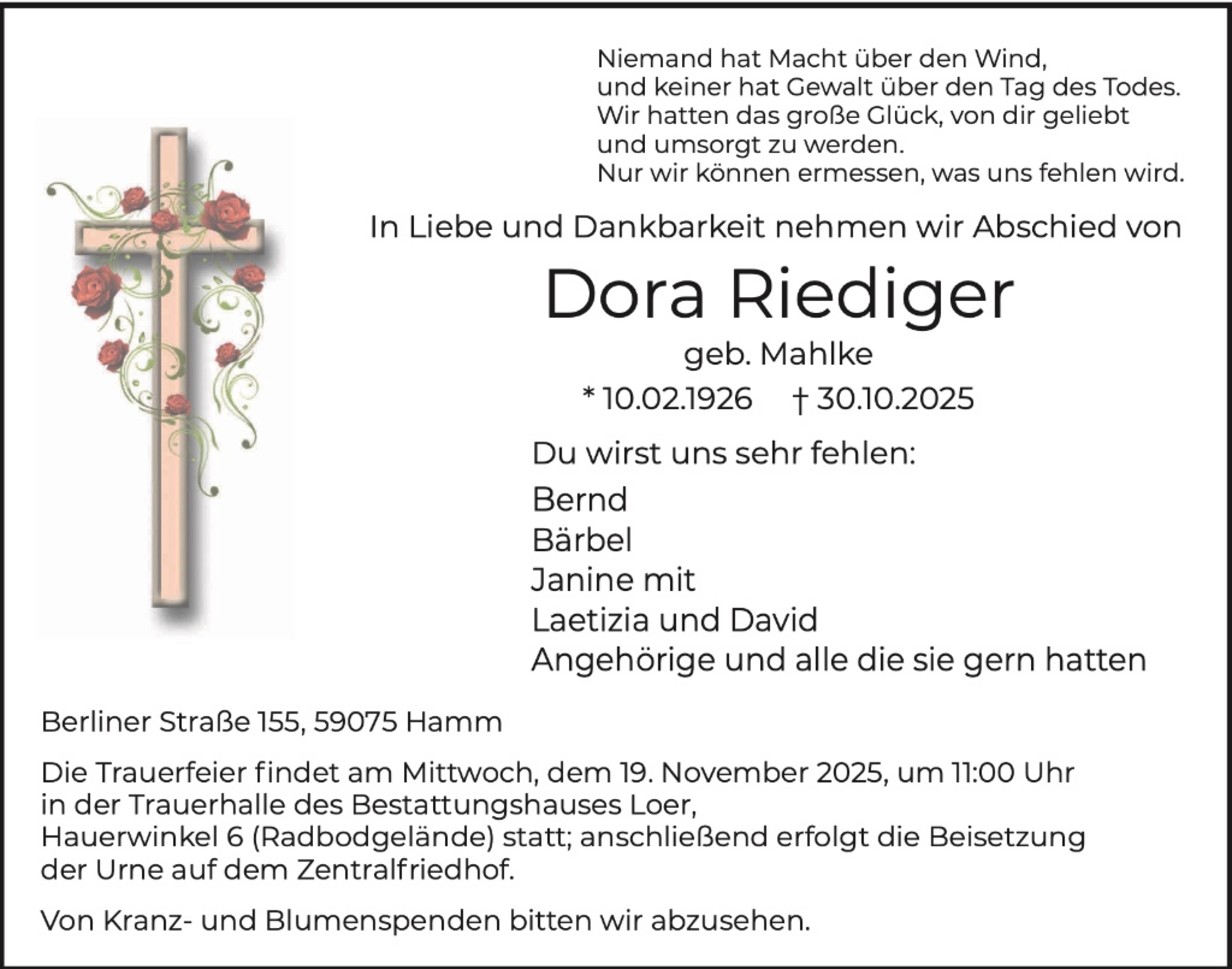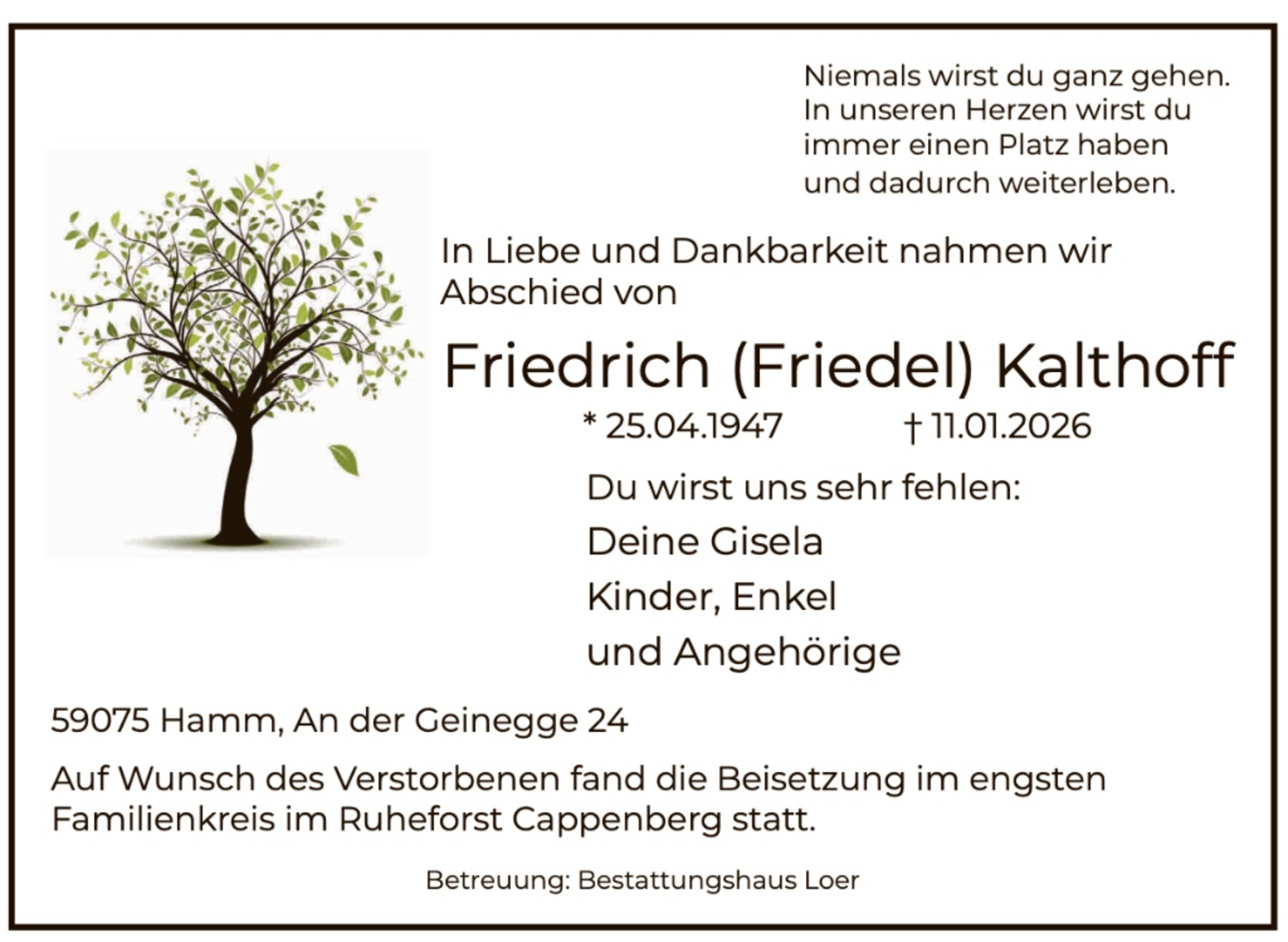 Zusätzlich zur Traueranzeige in der Zeitung finden Sie Ihren Nachruf auch in unserem Gedenkportal veröffentlicht: