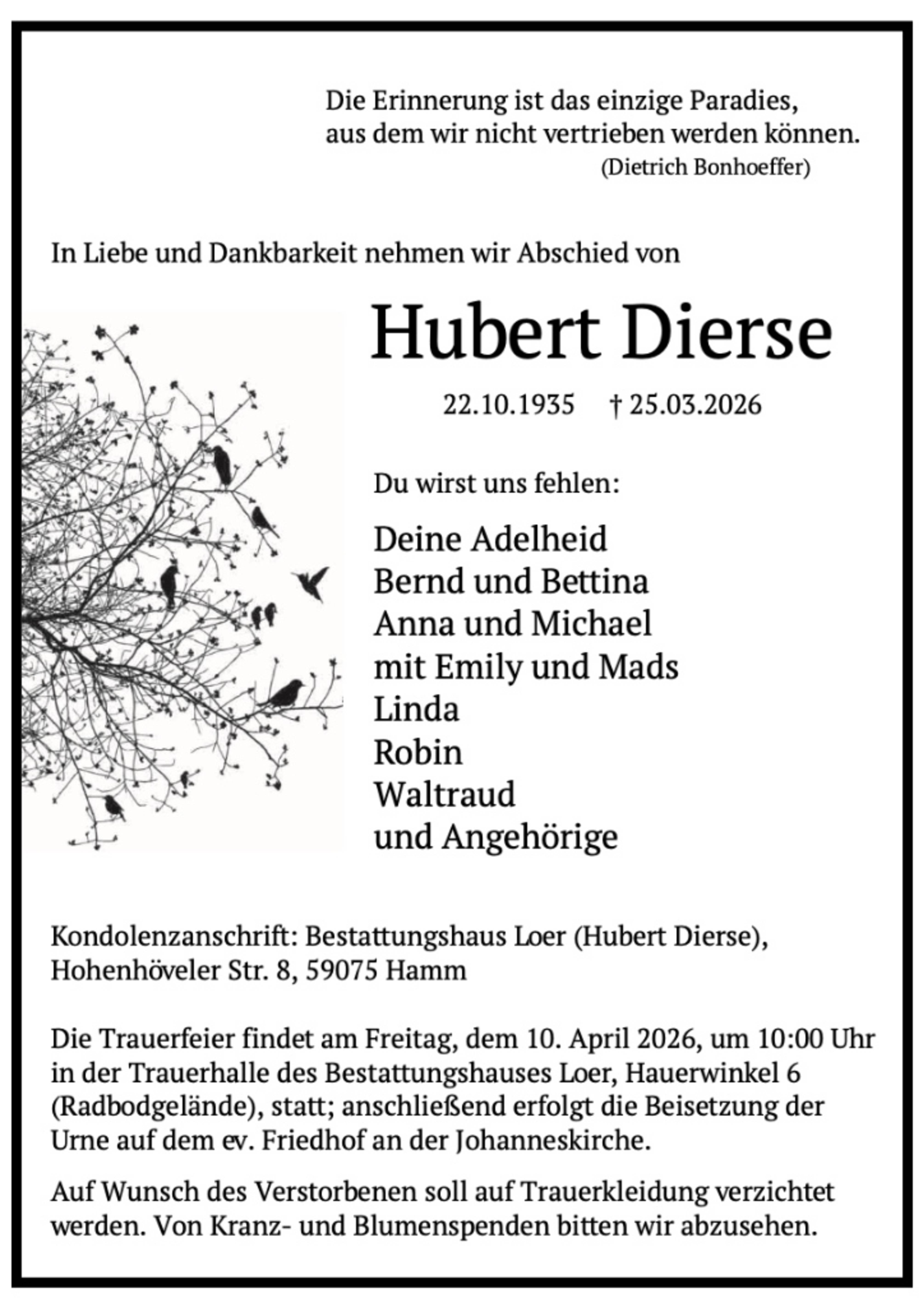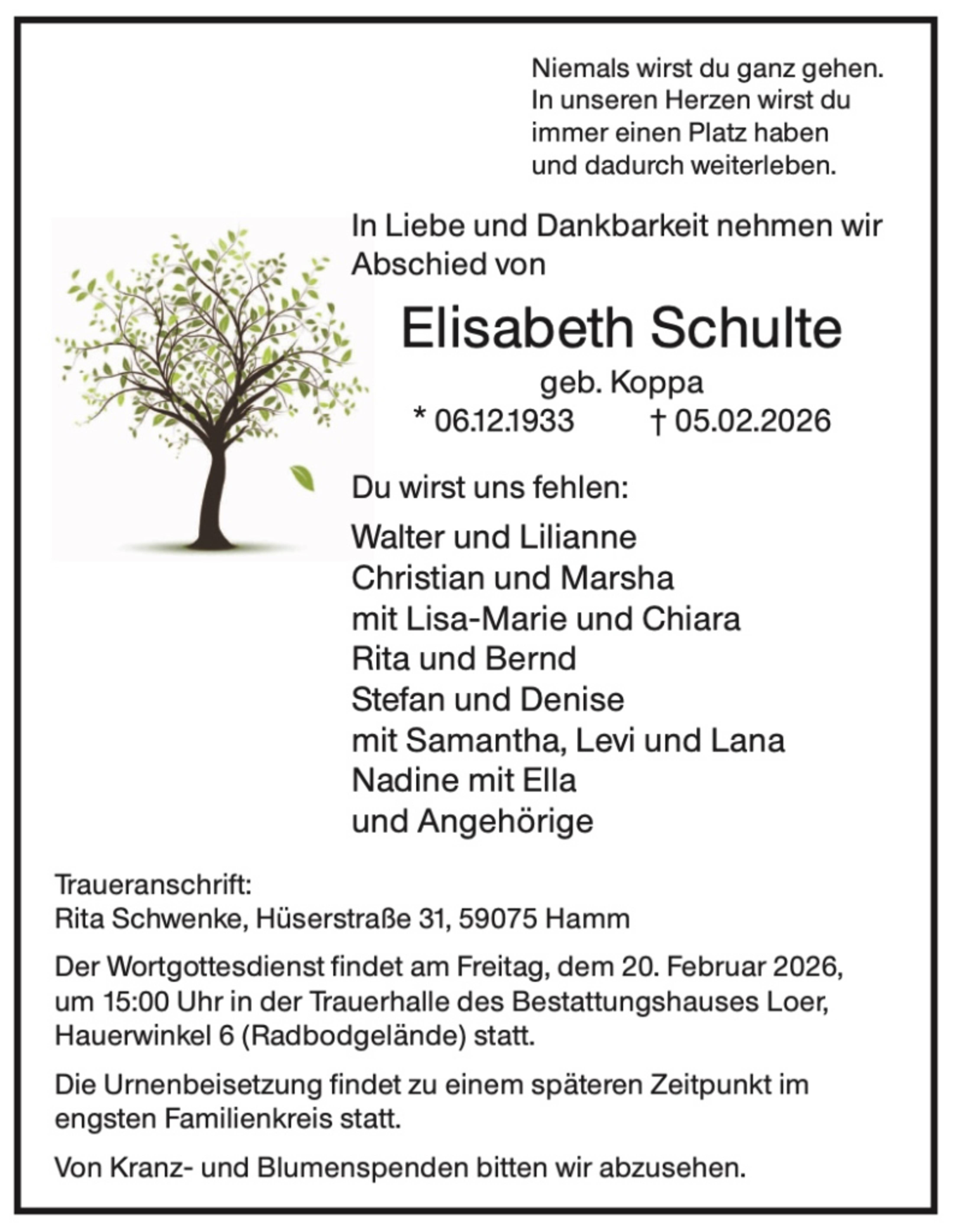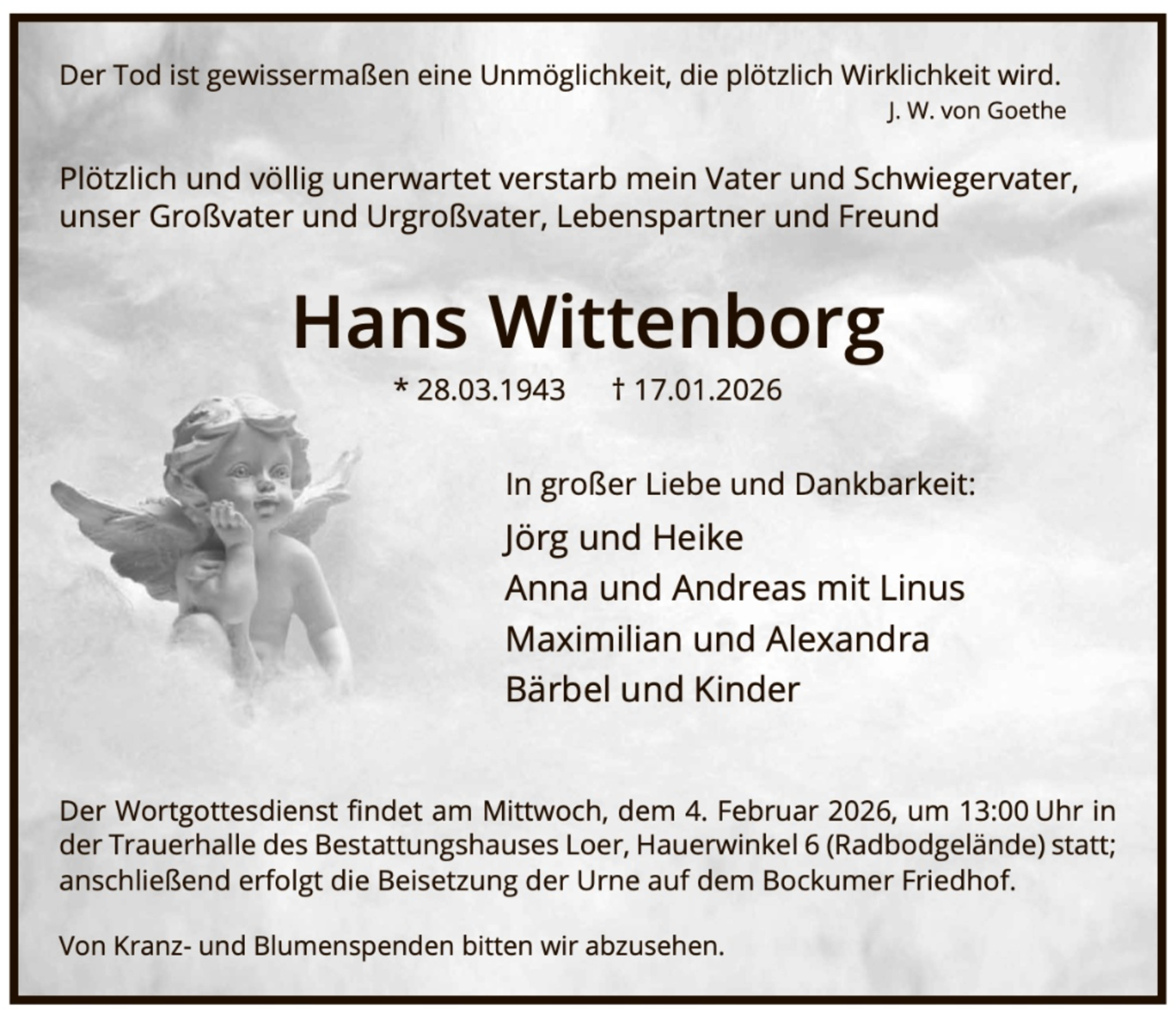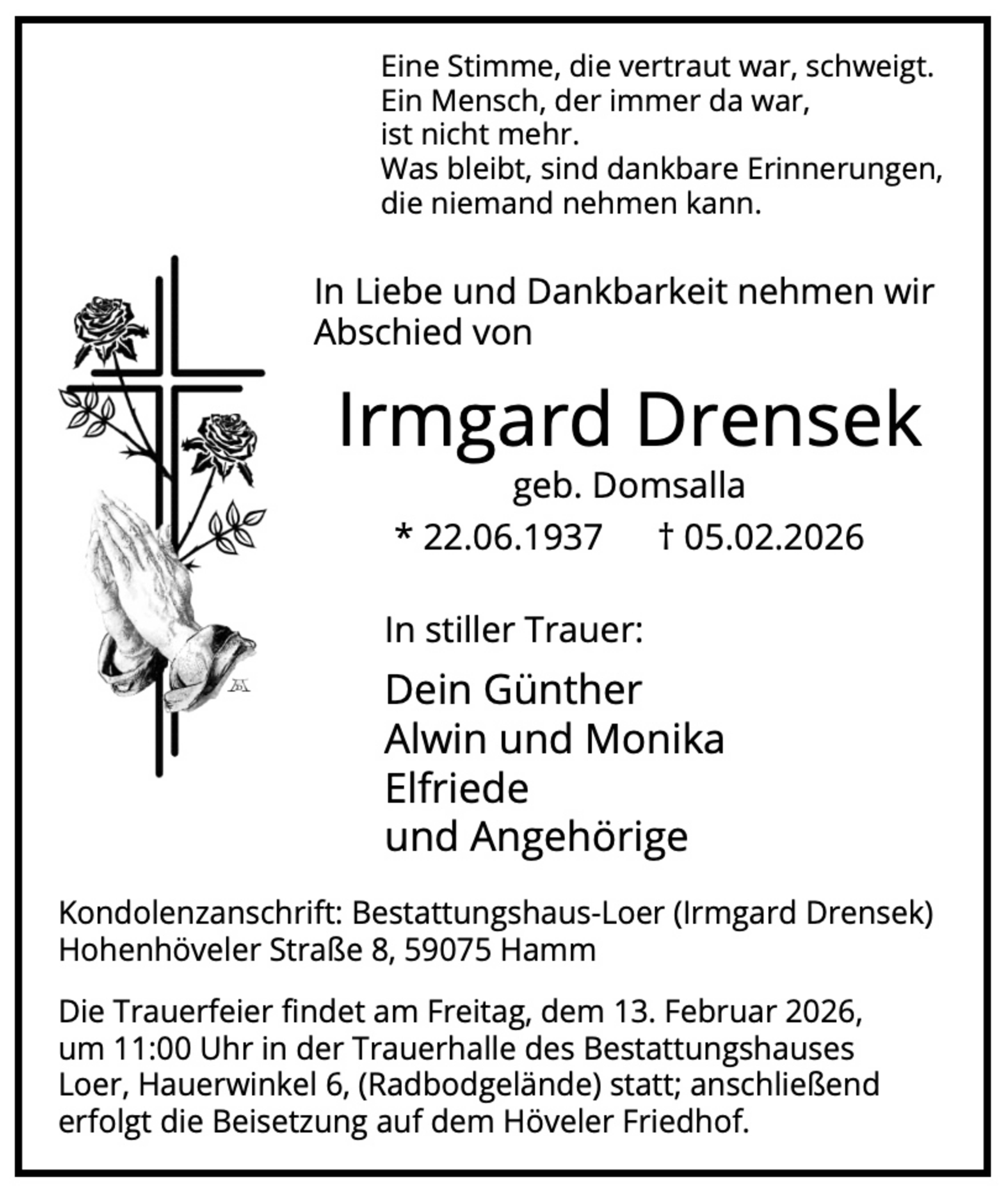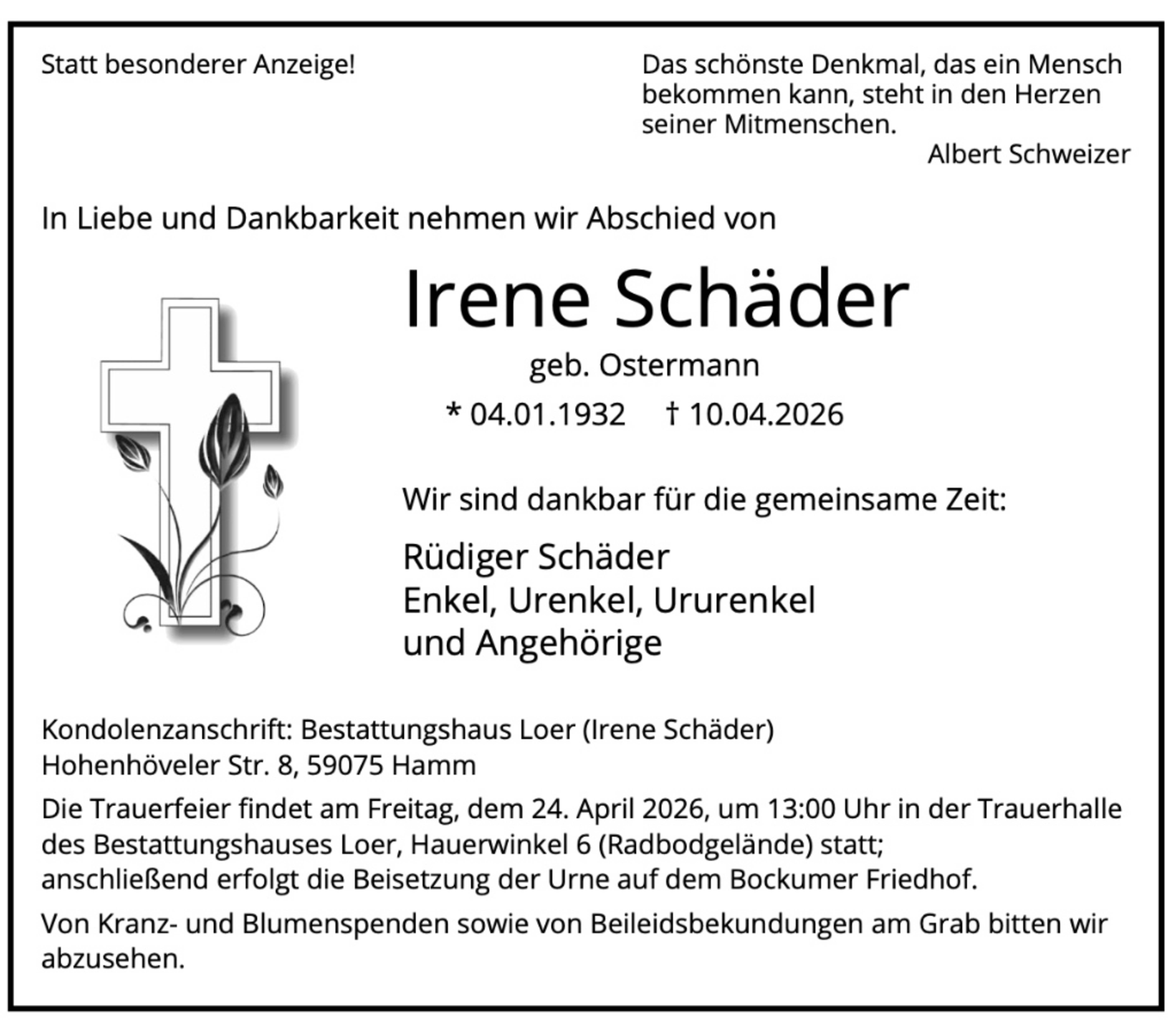 Zusätzlich zur Traueranzeige in der Zeitung finden Sie Ihren Nachruf auch in unserem Gedenkportal veröffentlicht: